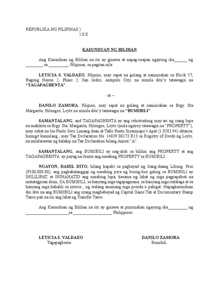 Contextual translation of memorandum ng kasunduan format sample into english kasunduan format. Kasunduan format sangla agreement sample kasunduan sa bilihan ng lupa there are 2 types of rental contracts in india one being a lease.